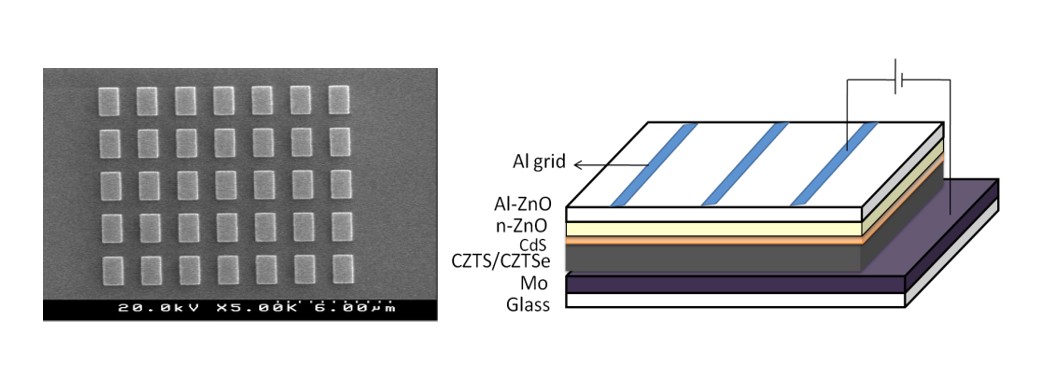 Today’s thin film photovoltaic technologies rely on elements that are costly and rare in the earth’s crust (e.g. In, Ga, Te) and are toxic (e.g. Cd). Hence, in future cost reduction and increased production, using abundantly available non-toxic elements, seem to be the main issues. Cu2ZnSnS4 (CZTS), having the kesterite structure, is one of the most promising absorber layer candidates for low cost thin film solar cells. Thin film solar cell device with the CZTS as active layer and micro-structured back contact layer were fabricated and analysed.